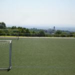 Ich trotte über eine nasse Wiese zum Vereinshaus, um mich dort umzuziehen. Die Startnummer mit Chip (der aus einem dahintergepappten Draht besteht) ist so starr, dass ein beleibter Läufer fordert, es müsste sie „in gewölbt“ geben. Die Wetterlage ruft nach einem dünnen Shirt mit darüberliegendem Singlet. Es ist feucht und warm. Wir laufen uns ein wenig ein und versuchen, dabei keine nassen Füße zu bekommen. Die breite Startaufstellung erfolgt mitten auf der Wiese. Nach wenigen Metern wird man durch ein Nadelöhr in Form einer steilen Rampe geführt. Danach ist man wach. Über 200 Teilnehmer gehen heute auf die große Strecke, aber das verteilt sich rasch. Zunächst muss man kurz durch den Ort, vorbei an dem Sieger des Wettbewerbs „gruseligster Vorgarten Deutschlands“. Vor einem Flachdachbau hat jemand Zypressen und Buchsbäume in grotesker Anordnung gepflanzt. Statt Rasen liegt Granulat dazwischen. Weiße Gartenlaternen, Gipslöwen auf Sockeln und Pinienzapfen auf dem Dach runden den Wahnsinn ab. Die Nachbarn von Familie Buchs bearbeiten ihren Rasen offensichtlich mit dem Nagelknipser. Auch das ist Kahl.